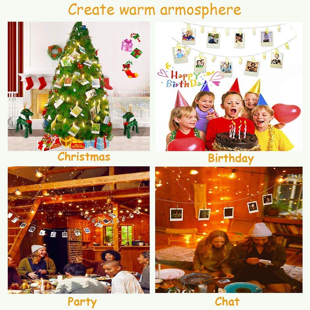 LED Photo Clip String Lights β 20 Clips, 3M (Warm White, Plug Powered)